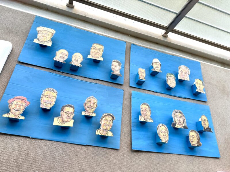 2.5D花おっさん制作のために段ボールに描いたおっさんたちのお顔を